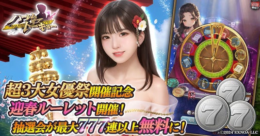 さらに、2025年1月1日(水)からは、毎日回せるルーレットにてさらに抽選コインを獲得することができます。超3大女優祭ボーナスとあわせて最大で777連以上の抽選コインを獲得できますので、毎日ログインして抽選コインを獲得しましょう!
