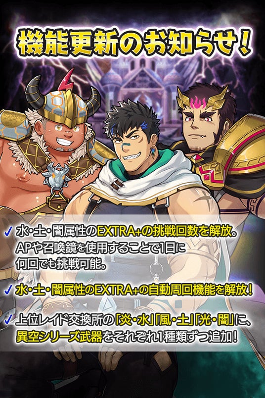 水属性レイドボス「ゲイボルグ」と土属性レイドボス「ミョルニル」と闇属性レイドボス「アダマス」に挑戦しやすいキャンペーンがスタート!