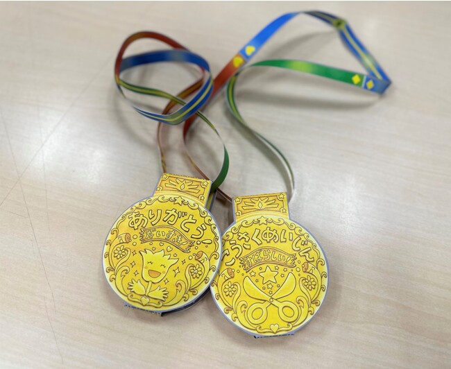 ◆こうさく名人の証 裏にメッセージや絵をかいて完成 「きらきら メダル」