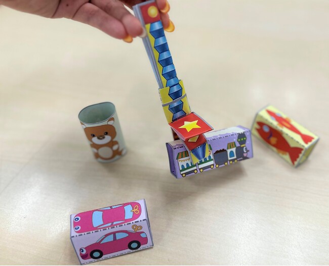 平面の紙から立体に組み立てていくことで、空間認識力が高まります。