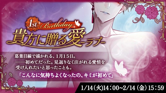 DMM GAMESを運営する合同会社EXNOA(本社:東京都港区、CEO:村中 悠介、URL:https://games.dmm.com/)は、オトナの女性向け恋愛ゲーム「夢幻楼と眠れぬ蝶」にて、葛葉(CV:恋津田蓮也)バースデーストーリーの販売を開始いたしました。また、新たなゲーム内イベントとカードガチャの開催もお知らせいたします。