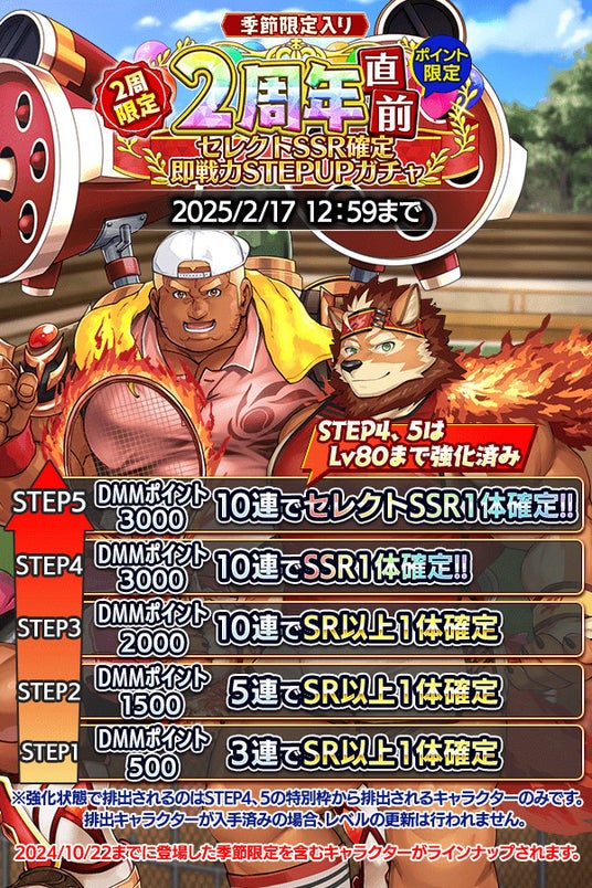 「季節限定入り2周年直前セレクトSSR確定 即戦力STEP UPガチャ」