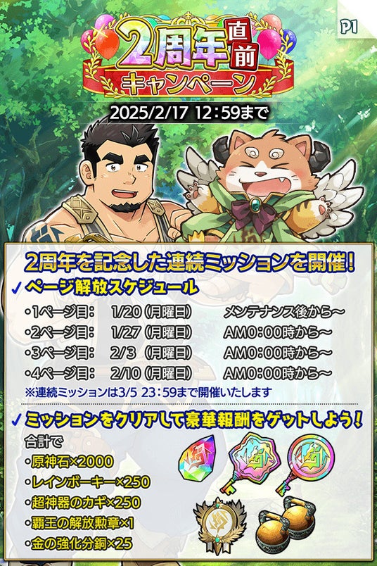 1/20(月)メンテナンス終了後から2周年直前キャンペーンを開催します!