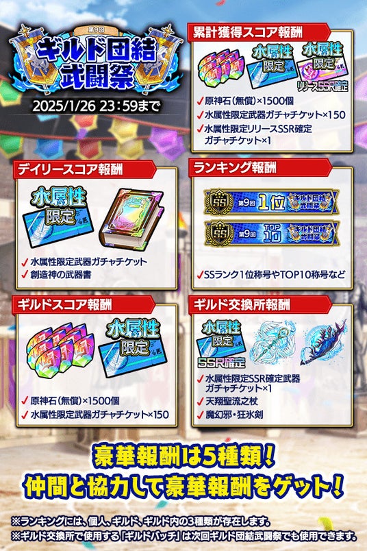 ギルドメンバーと力を合わせて豪華報酬を獲得するイベント「ギルド団結武闘祭」が開催!