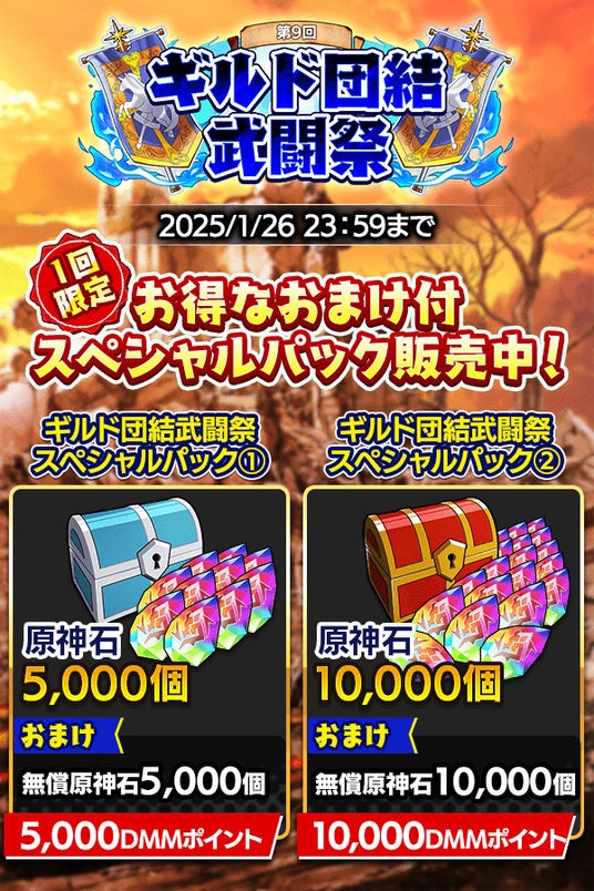 1回購入限定の「第9回ギルド団結武闘祭スペシャルパック」が2種期間限定で登場!