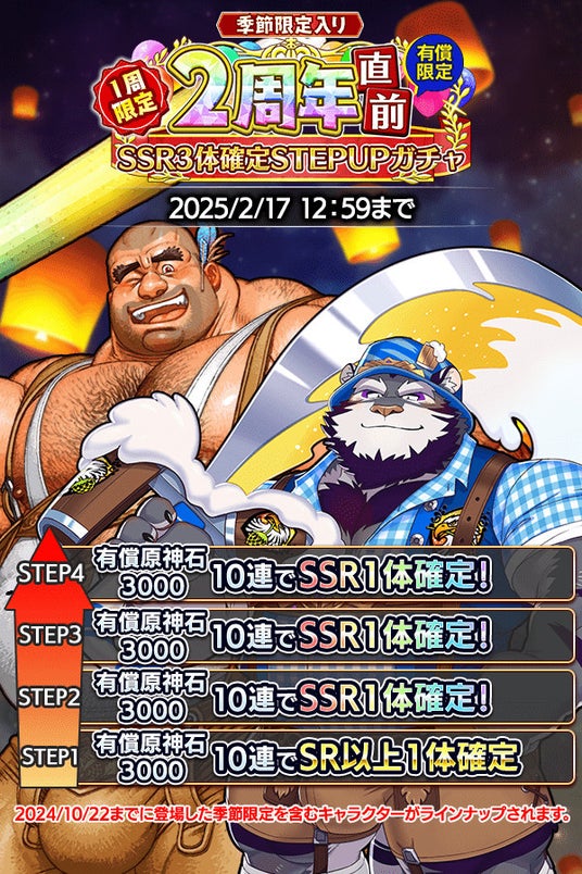 「季節限定入り2周年直前SSR3体確定STEP UPガチャ」