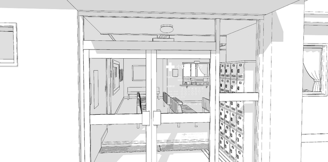 全体的な施設の構造や色味に古き良き時代の雰囲気を取り入れており、SketchUpで精密に制作されています。