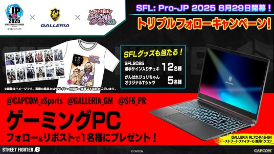 他にも、「ストリートファイターリーグ: Pro-JP 2025 出場選手サイン入りチェキ」や「がんばれジュリちゃん SFL2025 オリジナルTシャツ」の当選チャンスもございますので、皆さま奮ってご参加ください。