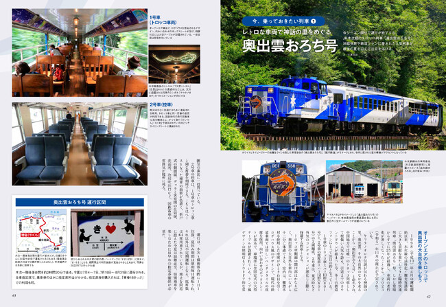 運行終了が決定した観光列車「奥出雲おろち号」「SL人吉」を筆頭に、最後の国鉄型特急電車である381系の置き換え開始が予定されている特急「やくも」、北陸新幹線敦賀延伸開業により運行区間が短縮される特急「サンダーバード」など、今乗っておきたい列車の旅を取り上げています。