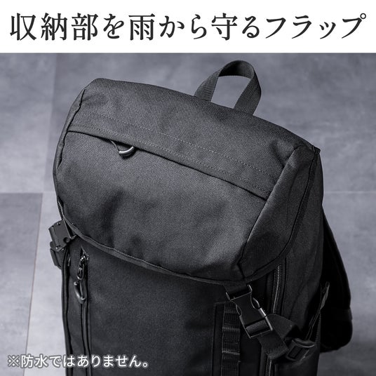 フラップはデザインとしてのアクセントだけでなく、フラップが雨の侵入を防ぎ、リュック内部をしっかりガードします。