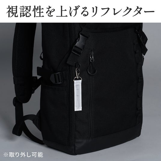 外側にタグやロゴマークのついていないロゴレスデザインのリュック。黒1色なので通勤や通学から普段使いにも使えて、カジュアルにもフォーマルにもマッチする、男女共用の万能リュックです。