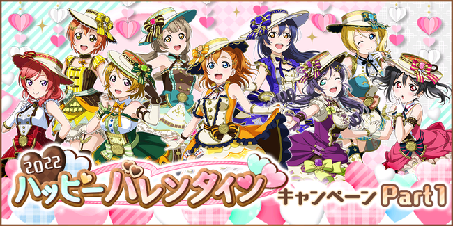 株式会社ブシロード(本社:東京都中野区、代表取締役社長:橋本義賢)は、KLab株式会社(本社:東京都港区、代表取締役社長:森田英克)と共同開発いたしましたスマートフォン向けアプリ『ラブライブ!スクールアイドルフェスティバル』(以下、スクフェス) において2022ハッピ-バレンタインキャンペーンPart1の開催をお知らせいたします。是非貴社の媒体にてお取り扱い頂きますようお願い申し上げます。