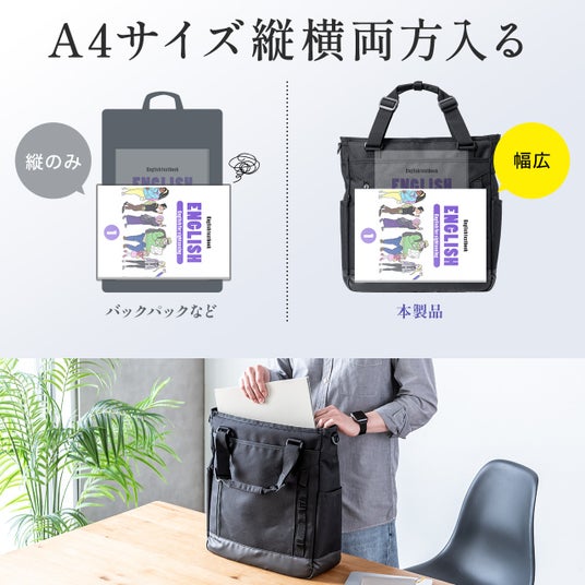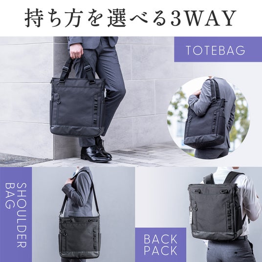 サンワサプライ株式会社(本社:岡山市北区田町1-10-1、 代表取締役社長 山田 和範)が運営している直販サイト『サンワダイレクト』では、通勤や通学、普段使いに便利なロゴレスのシンプルなデザインで、トート・リュック・ショルダーバッグの3WAY仕様のトートバッグ「200-BAGLN3BK」を発売しました。