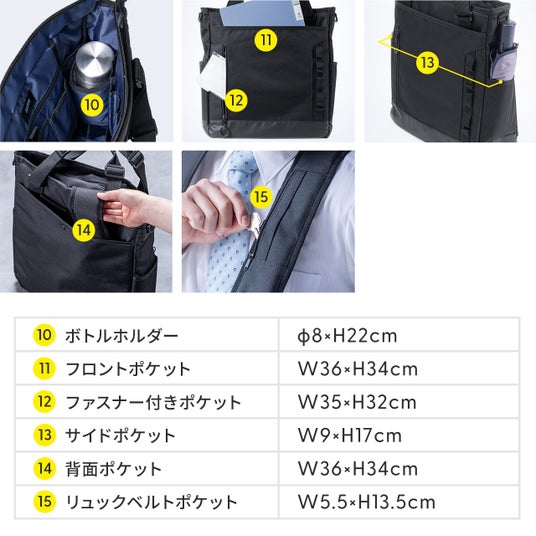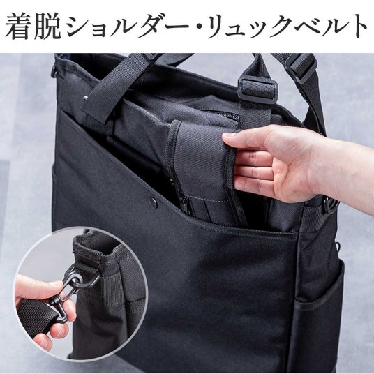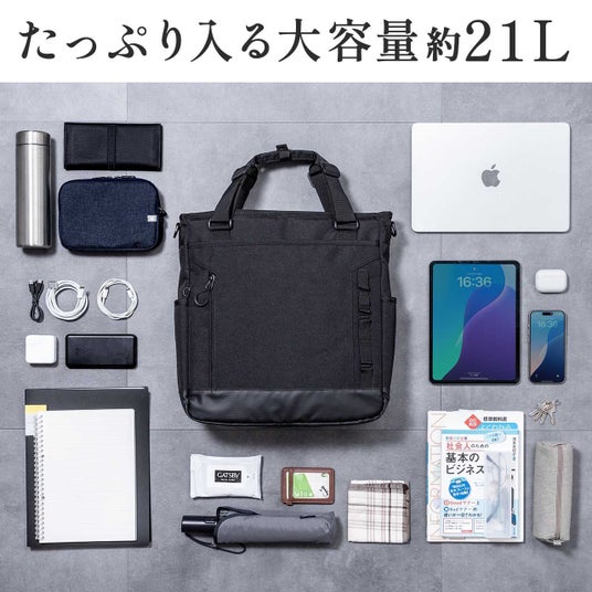 掲載ページ3WAYトートバッグ ロゴレス リュック / ショルダーバッグ 15.6インチ PC収納 通学 通勤 カジュアル 多機能 メンズ ビジネス 容量 21L A4収納 ブラック