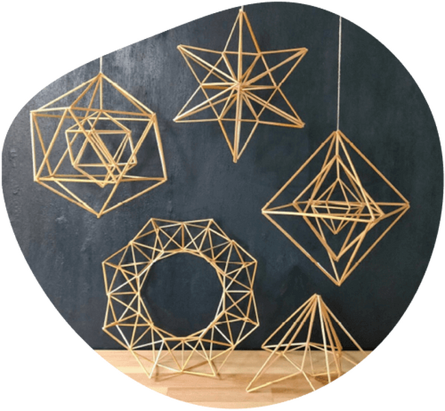 フィンランドの伝統的な装飾であるヒンメリは「幸運のお守り」と呼ばれ、クリスマスの装飾品などとして親しまれています。麦わらやストローを糸でつなげて作る立体的な幾何学模様は夏休みの工作にもぴったりです!