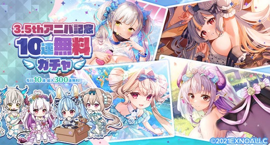 3.5thアニバーサリーを記念して、10連無料ガチャを開催中!過去に実装した一部限定、新限定★3キャラもラインナップ入り!ぜひこの機会に、毎日ログインしてプレイしてくださいね♪