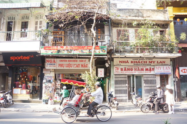 扱う商品が通りごとに分かれている旧市街。ハノイに都が移った1010年、王室への献上品をつくる職人が全国からこのエリアに集められたのがはじまりです。
