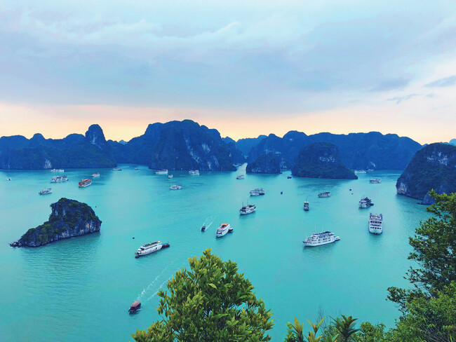 ハノイ中心部から車に乗り2時間半ほどでアクセスできるハロン湾。日帰りも可能ですが、クルーズ船で1泊してゆっくり楽しむのがおすすめです。