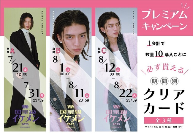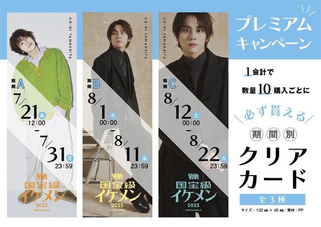 ViVi国宝級イケメンにランクインしたこのタイミングでしか購入できない記念グッズは7月21日金曜日12時から約1ヵ月間、期間限定でオンラインくじサイトにて発売予定(販売終了は8月22日火曜日23時59分)。二度と手に入らない貴重なグッズを手に入れて、さらなるランクアップを狙う山下幸輝さんと杢代和人さんを応援しよう!