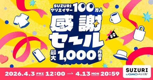これを記念し、日頃から「SUZURI byGMOペパボ」での創作活動を盛り上げているクリエイターを表彰する『100万人記念SUZURI賞 byGMOペパボ』と、お得にグッズを購入できる特別セールを実施します。