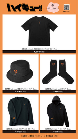 アニメイト池袋本店4F、秋葉原1号館3F 「Space A la mode」にて、アニメ「ハイキュー!!」から「arti-mate」のオリジナルアパレル、雑貨の販売をいたします。