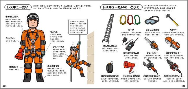 機関員って何? 消防官も事務作業をするの!? 等々、中には大人も知らない情報があるかも……? 楽しいイラスト図鑑で、お子さんの「好き」を応援します!
