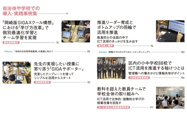 先進的にICT活用推進を行う5つの自治体・学校・教育委員会の取り組みを紹介。関係者への取材をもとに、ICTの環境整備や利活用施策を進める工夫・ポイントのほか、児童生徒・教員の変化など、児童生徒の学びを広げる具体的な事例を掲載。ICT活用推進における成功の秘訣がわかります。
