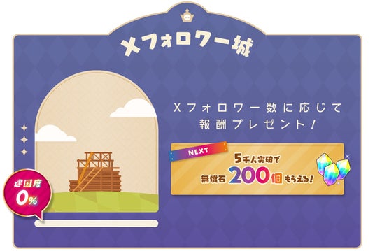 「事前登録者数」「Xフォロワー数」「事前登録ガチャ総回転数」に応じて発展していく3つのお城が登場!