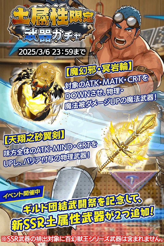 ※土属性限定武器ガチャは2月21日(金)メンテナンス終了後~3月6日(木)23:59まで