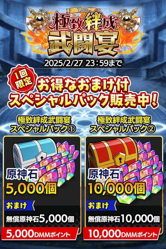イベント期間中、原神石がおトクに購入できる「第6回極致絆成武闘宴スペシャルパック」が2種登場!