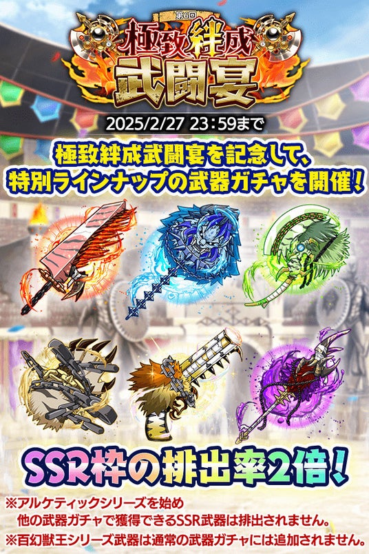 ※極致絆成武闘宴百幻獣王武器ガチャは2月21日(金)メンテナンス終了後~3月6日(木)23:59まで