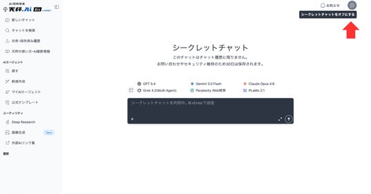 シークレットチャットは会話の履歴一覧に表示されず、AIへの記憶の書き込みおよび参照はいずれも無効となります。
