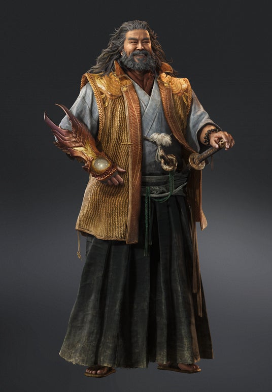 老齢ながら幻魔を圧倒する剣の腕を持つ。武蔵や巌流と同じ鬼の篭手を身につけているようだが…?