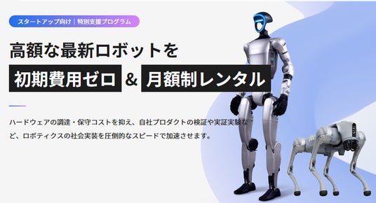 支援内容として、採択されたスタートアップは、GMOインターネットグループが渋谷・セルリアンタワーに開設した日本最大級(※1)のフィジカルAI研究開発拠点「GMOヒューマノイド・ラボ 渋谷ショールーム」にて、実機ロボットを用いた開発・検証環境を活用できるようになります。また、スタートアップ向けロボットレンタルサービスにより、高額な最新ロボットを初期費用ゼロ・月額制で利用することもできます。