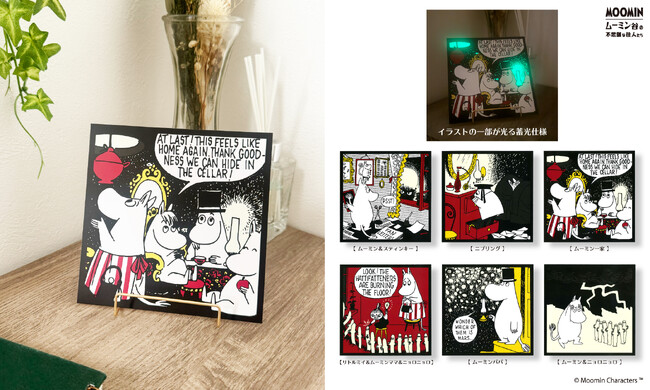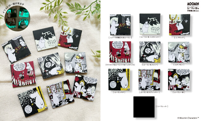 ムーミン谷の不思議な住人達のステッカーもイラストの一部が光ります!