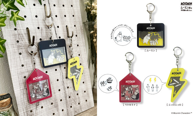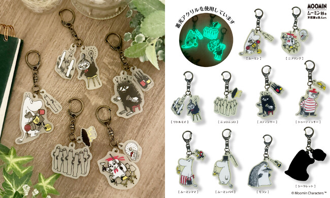 ムーミンやリトルミイ、ニョロニョロたちがキーホルダーを振ると中で動きます!