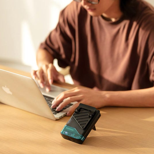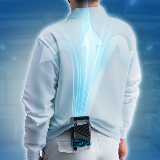 腰にクリップで固定して簡易的な空調作業服のように使え、両手が自由になり作業や移動がスムーズです。