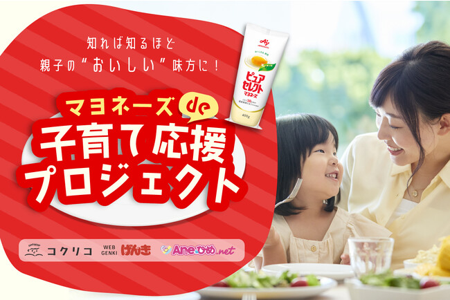 株式会社講談社(東京都文京区)が運営する子育て応援ウェブメディア「コクリコ」「WEBげんき」「Ane(ハート)ひめ.net」(以下、Aneひめ)は、味の素株式会社(東京都中央区)の「ピュアセレクトマヨネーズ」とタッグを組み、マヨネーズの魅力を再発見するためのプロジェクト「マヨネーズde子育て応援プロジェクト」を開始します。