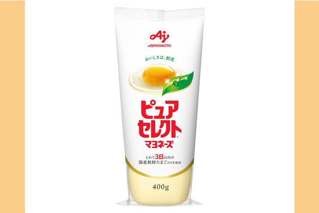 「ピュアセレクトマヨネーズ」は素材を厳選し、とれて3日以内の国産新鮮たまご、国内製造の特別なお酢やキャノーラ油などが原材料。鮮度を維持するために液卵工場とマヨネーズ工場は近接しており、徹底した品質管理のもとで作られています。