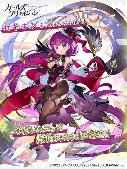合同会社EXNOA(本社:東京都港区、CEO:村中 悠介、URL:https://games.dmm.com/)が運営するDMM GAMESにおいて、「クリエイティブチーム くまさん」第4弾作品となる『ガールズクリエイション -少女藝術綺譚-』(以下、『ガールズクリエイション』)にて、イベント「奪還☆正義のファントムシーフ」を開催いたしました。また、ラファエロ★5スタイル【ラブファントム】とセキエン★5スタイル【今宵限りの名怪盗】が新登場のピックアップガチャの開催もお知らせいたします。