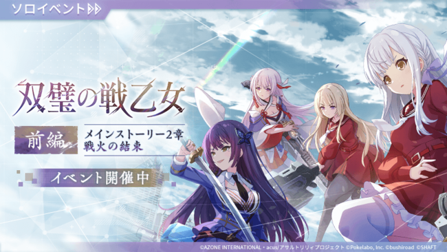 株式会社ブシロード(本社:東京都中野区、代表取締役社長:橋本義賢)と株式会社ポケラボ(本社:東京都港区、代表取締役社長:前田悠太、グリー株式会社100%子会社)は、好評配信中のゲームアプリ「アサルトリリィ Last Bullet」にて、2022年2月19日(土)にメインストーリー2章 戦火の結束『双璧の戦乙女』の配信を開始しましたことをお知らせ致します。報道関係の皆様におかれましては、ぜひ本情報をお取り扱いいただけますようお願い申し上げます。