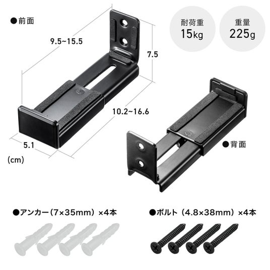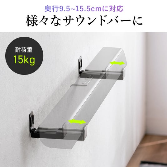 ●奥行9.5~15.5cmまで調整可能、耐荷重15kgまで対応し、さまざまなサウンドバーに対応します。