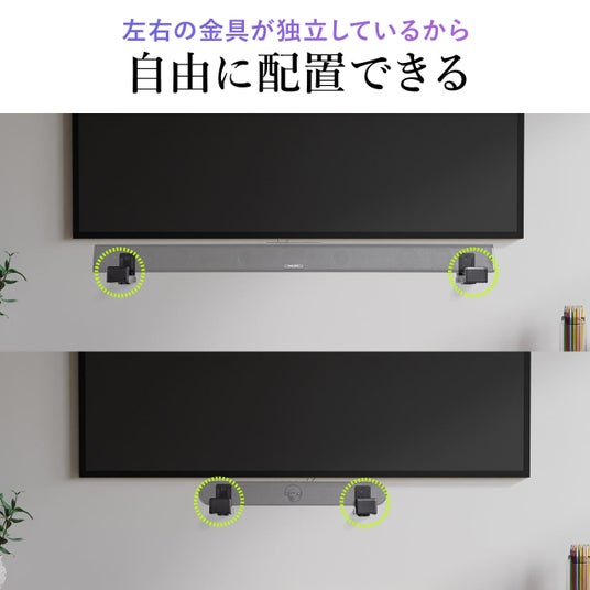 ●左右の金具が独立しており、ご使用のサウンドバーにピッタリ合わせることができます。