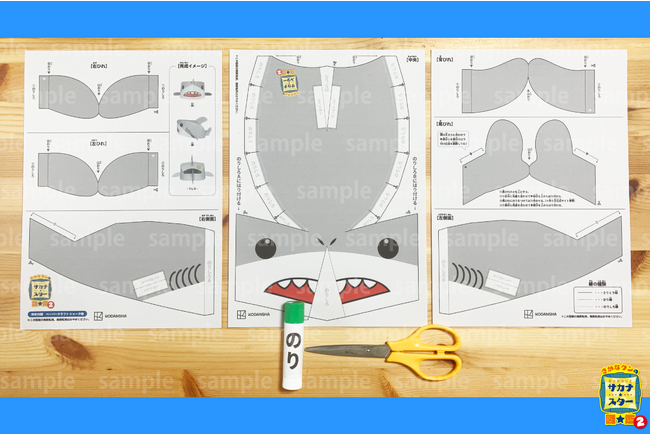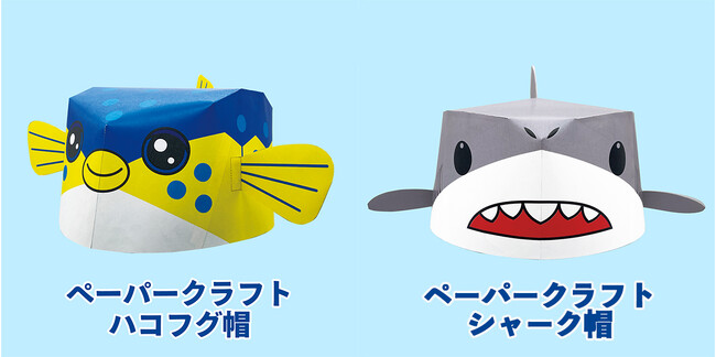 前作の特別付録 ペーパークラフトハコフグ帽に、今回はシャーク帽がなかま入り! 本書に付いている帯に掲載した2次元バーコードからダウンロードページにアクセスできるよ。