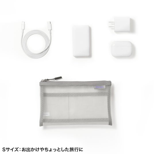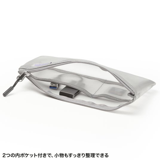 メッシュ生地を採用したフラットポーチです。