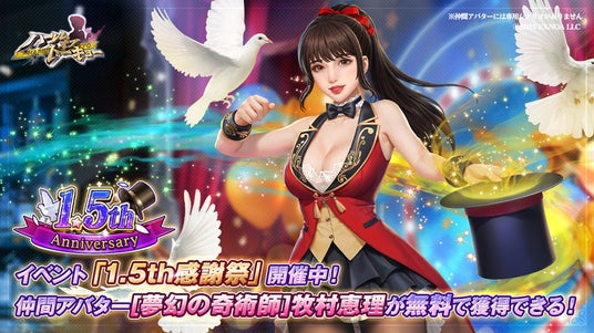 イベントページにて1日1回「イリュージョン」をすることができ、合計5回「イリュージョン」することで『牧村恵理』の新仲間アバターが獲得できます。