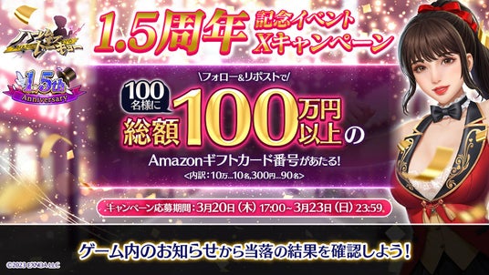 2025年3月20日(木)より、合計100名様に総額100万円以上のAmazonギフトカード番号が当たるキャンペーンを開催しています。