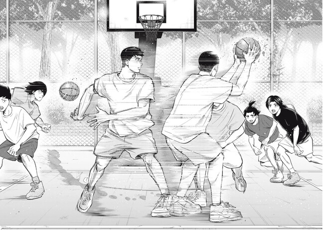 『アオバノバスケ』は身長2mの主人公 青葉太樹が、都内屈指の強豪 青蕾高校バスケ部に入部して日本一を目指して成長していく高校バスケ漫画だ。著者の学慶人氏は、連載デビュー作『ボーイズ・ラン・ザ・ライオット』(講談社)が2021年米国ハーヴェイ賞「Best Manga」部門にノミネートされた世界も注目する才能。学生時代のバスケ経験を活かして『アオバノバスケ』の連載に挑む。