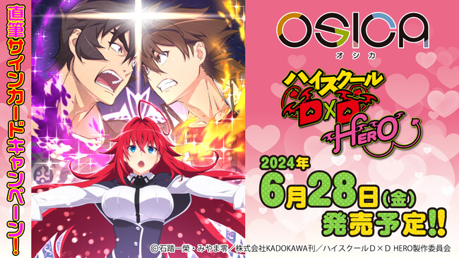 株式会社ムービック(本社:東京都豊島区、代表:高橋竜)から、人気アニメが続々登場のトレーディングカードゲーム(以下、TCG)「OSICA(オシカ)」が発売中。「自分の推しキャラで相手のハートを奪う」。作品・キャラクターへの愛を何より大切にしたカードゲーム。その最新弾「ハイスクールD×D HERO」が2024年6月28日に発売します。