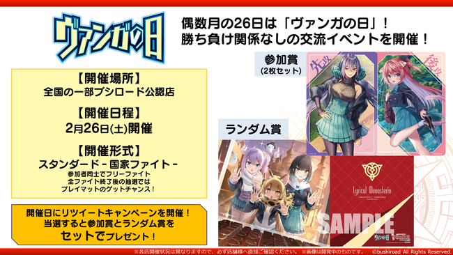 2月26日は「ヴァンガの日」!開催日は勝ち負け関係なしの交流イベントを開催!当日はリツイートキャンペーンも開催!